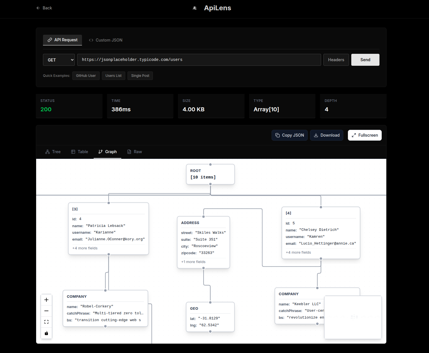 Test APIs and convert JSON into interactive tree views, graphs, and tables — all in your browser.